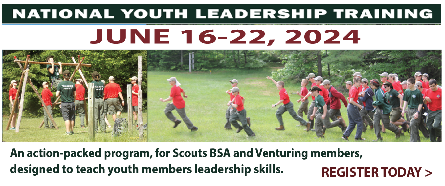 We have very limited space remaining! In Cubs we have space for Lions, Bears, Webelos and AOLs. For the older Scouts we have space in the following Merit Badge and Nova Classes: Up and Away Nova, Animation (new session added), Architecture, Chess, Coin Collecting, Digital Technology (only 1 space remains!), Electronics, FingerPrinting, First Aid (only 1 space remains), Music (only 1 space remains), Photography (only 1 space remains), Public Speaking, Scouting Heritage, Shoot Nova, and Space Explorations. For the Adults we have space remaining in the following trainings: Troop Committee, Scoutmaster and Assistant Scoutmaster Training, Eagle Coach Training, and Merit Badge Counselor Training. Registration closes on March 1st without exception! Please make sure to get your registrations in by that date. Register for your classes now as spots fill up quickly! We are still looking for additional volunteers to help in ALL classroom space. If you are interested in volunteering or have any other questions, please reach out to Amanda Tuttle. | | | | | | | | | | | | "The Scoutmaster teaches Scouts to play the game by doing so himself.” – Lord Baden-Powell