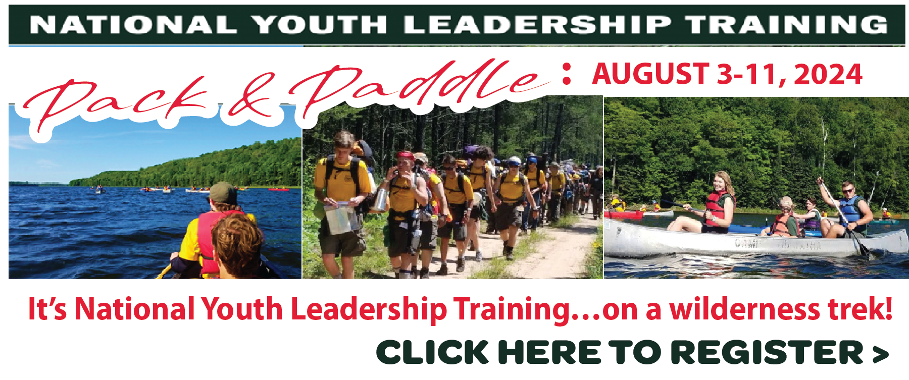 Geared for Scout aged youth (11+), this program focuses on learning about maple syrup making from tapping trees to bottling syrup. Registration is $30 per person and includes all programming, a pancake breakfast, lunch, an event patch, and an 8 oz bottle of syrup. If your Scout has previously attended check out our Advanced Program track where they can dive deeper into their favorite parts of maple syrup. | | | | | | National Youth Leadership Training (NYLT) is an exciting, action-packed program designed for councils to provide youth members with leadership skills and experience that they can use in their home troops and crews, as well as other situations demanding leadership of self and others. | | | | | | Pack & Paddle adds value to the NYLT leadership training syllabus by executing the course of instruction in the context of a wilderness backpack and canoe trek, where participants put leadership theory to immediate, real world practice. For many, Pack & Paddle is a mountaintop experience from which they will benefit the rest of their lives. | | | | | | STEM Pi Day registration is still open! Come out for a STEM-tastic day at Fox Valley Technical College in Appleton! From Lions to Eagle Scouts and Leaders, we have programs for all ages. New this year is additional Adult Leader training!